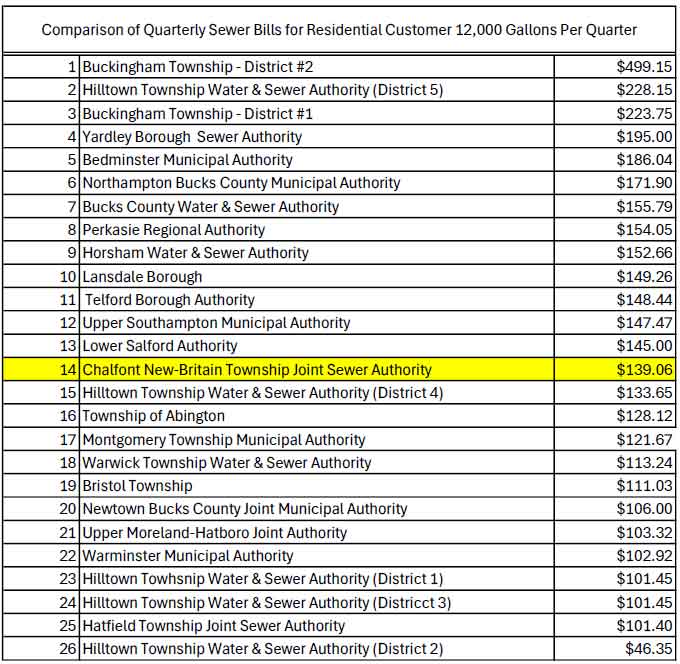 Even with this increase, the Authority believes that our sewer rates continue to provide exceptional value to our customers. The value of clean water cannot be overstated. As you can see in the table below, our rates are still below average for our region.